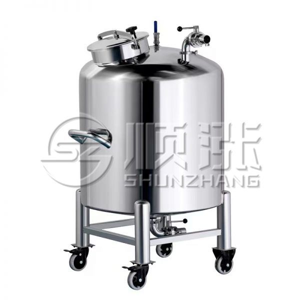 - Product Mix:The main body of the mobile tank is made of high quality 304/316L stainless steel, cylindrical tank structure, equipped with sealed roof, inlet and outlet valves and pipeline connections, the bottom of the installation of high-quality casters with brakes.
